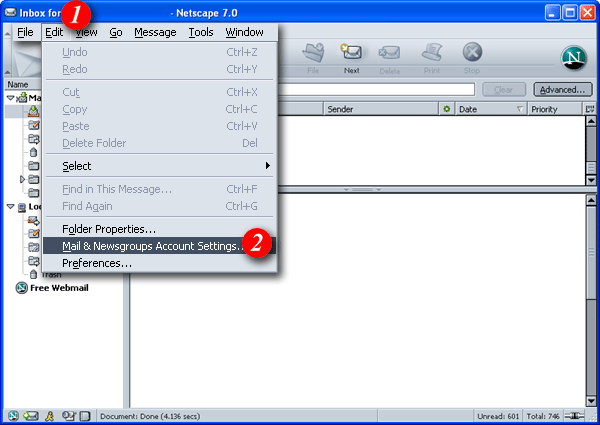 Netscape Mail 7 is now setup to receive email from your