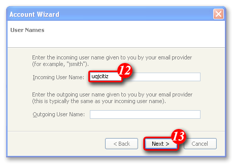 'Incoming User Name' field. enter your 'email address ' in the 'Outgoing