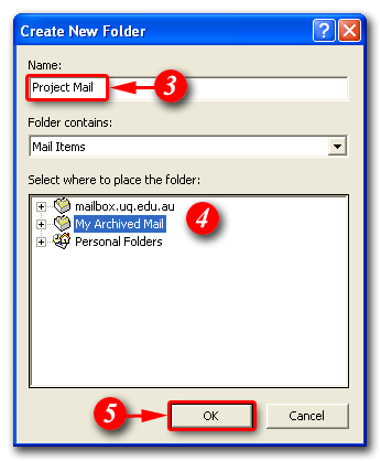 4)Ensure your personal folder is selected as the location for your sub-folder and
