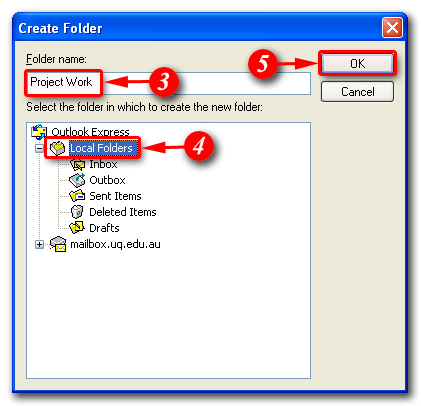 To help you to manage your mail quota you may find it useful to create a number of sub- folders within your local folders area. To create a new sub-folder: